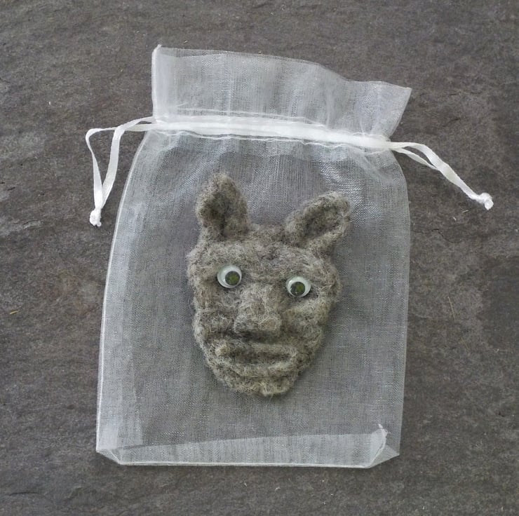 Ever seen those weird creatures peering down from old buildings? This felt fridge magnet is inspired by those gargoyles and grotesque faces carved hundreds of years ago; a surprised face with large pricked-up ears!