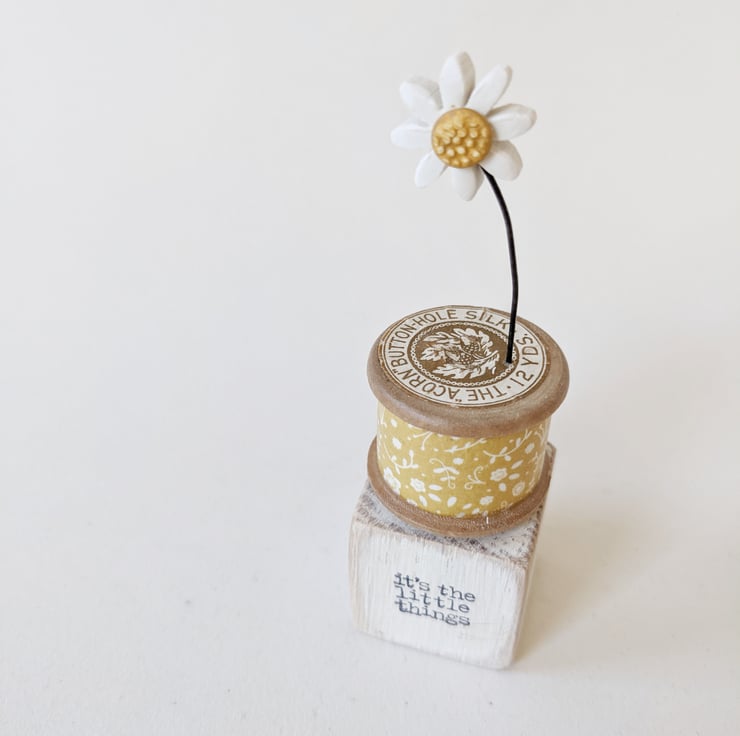 I love finding old bobbins on rummaging trips! The tiny daisy is perfect on top.