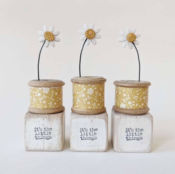The painted oak block beneath has the hand stamped words 'it's the little things'