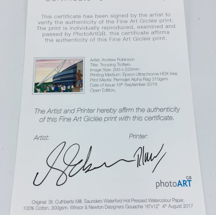 Titled ‘Trooping Trotters’ this is a unique Bolton Wanderers F.C print direct from myself the artist. My artworks are a celebration of the match day experience and of stadium architecture.