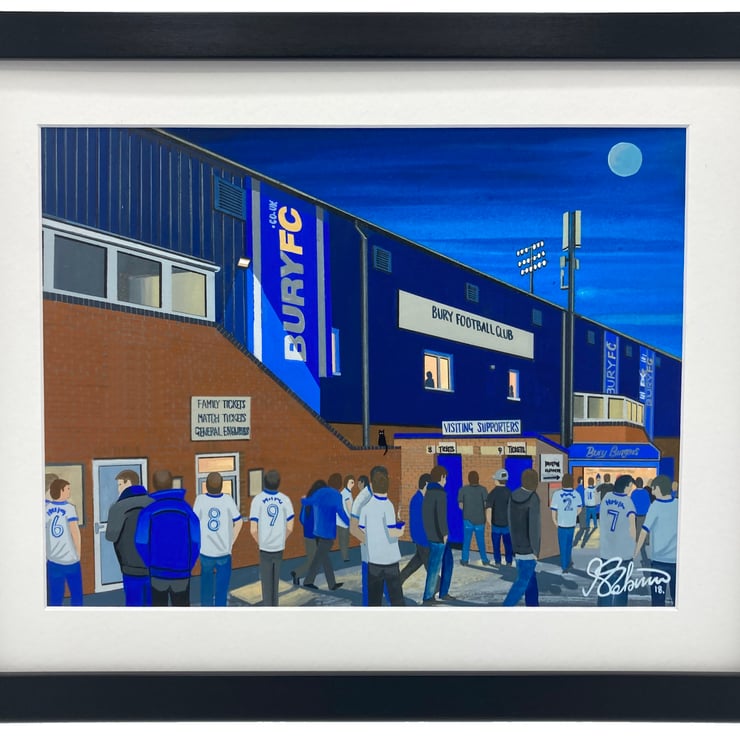Titled ‘Shouting Shakers’ this is a unique Bury F.C print direct from myself the artist. My artworks are a celebration of the match day experience and of stadium architecture.