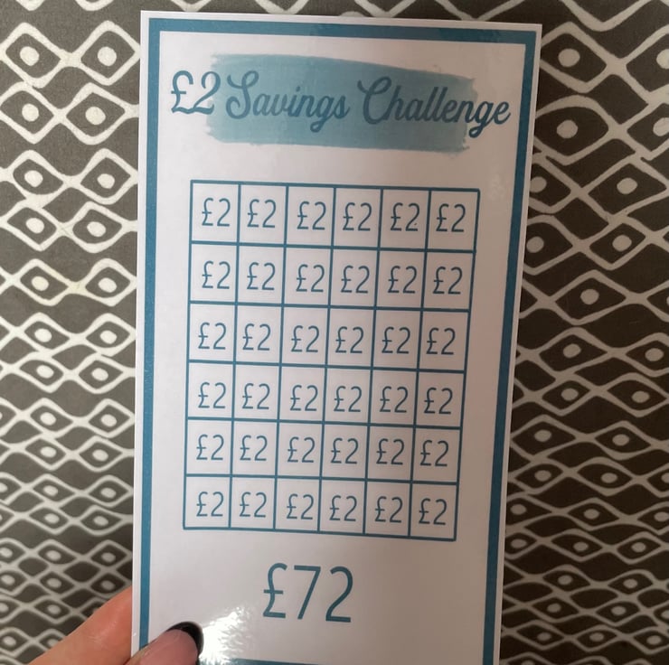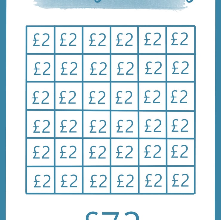 Needing a fun tracker to save money? This savings challenge is a great way to track your saving process. Colour in each square when you save £2 and feel the achievement of saving your money.
