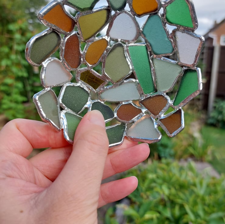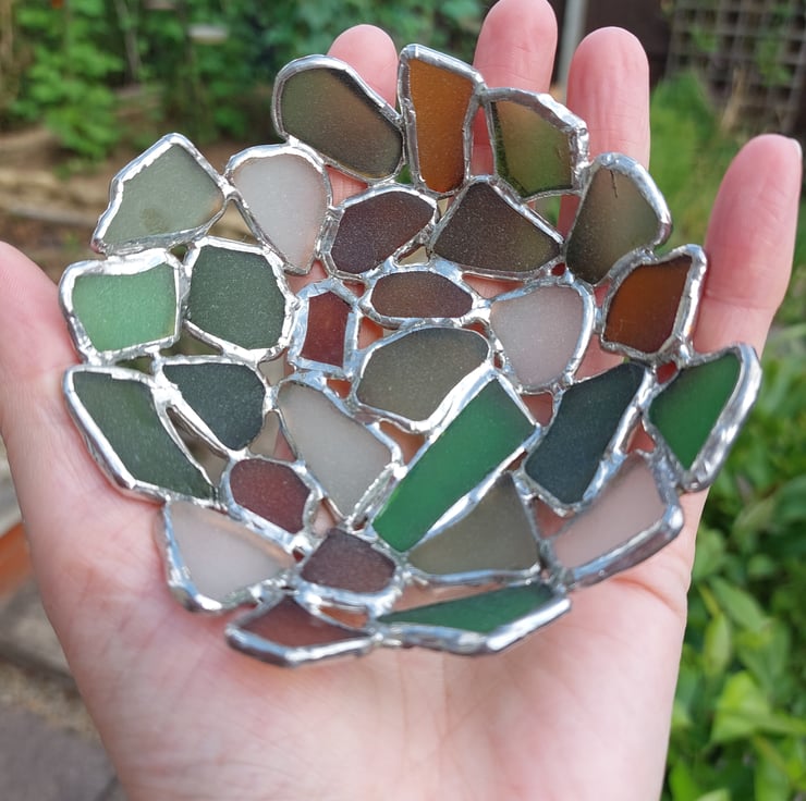 Sea glass is a wonderful and natural material to work with and I often create beautiful and unique things using soldering techniques. It's a very satisfying craft to do :). I am really delighted with this item as it's gorgeous for your keep sakes. You can also use this as a tea light holder when it creates beautiful shadows through the glass... stunning!