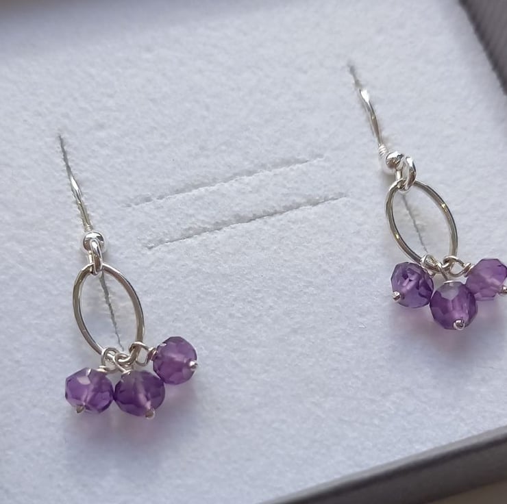 Pretty purple amethyst drop Navette earrings with sterling silver hooks.