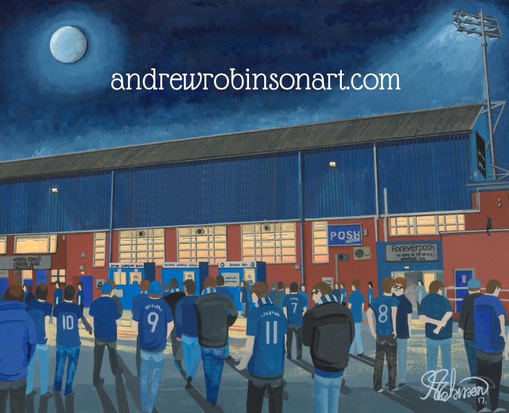 Titled ‘Posh Partisans’ this is a unique Peterborough United F.C print direct from myself the artist. My artworks are a celebration of the match day experience and of stadium architecture.