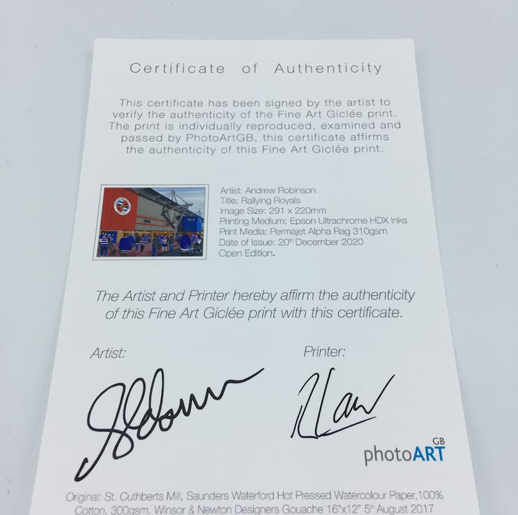 Titled ‘Rallying Royals’ this is a unique Reading F.C print direct from myself the artist. My artworks are a celebration of the match day experience and of stadium architecture.