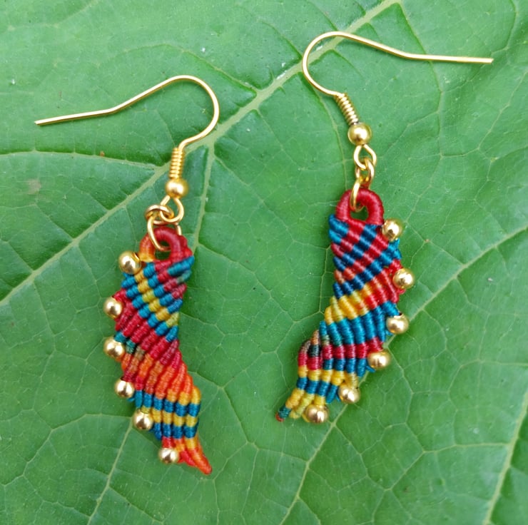 When I began making these earrings I was watching Lucifer. I hadn't expected to make angel wings, it just sort of happened subconsciously. Since making them I have had the knotting bug and have made them in all different colours.