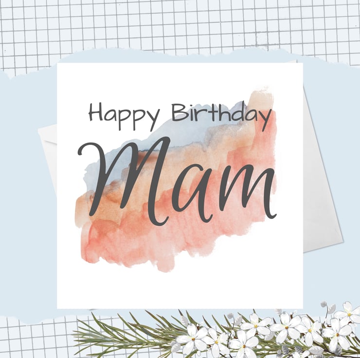 Happy Birthday card with a gorgeous modern splash effect in Peach and lilac colours