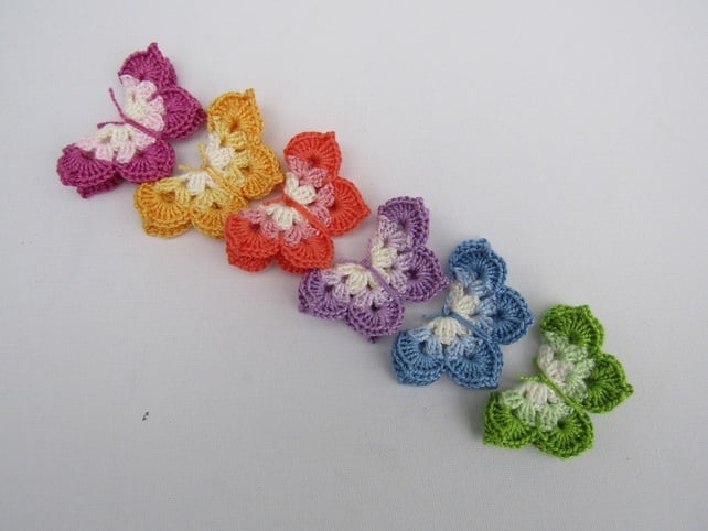 Beautiful crochet butterflies in stunning bright colours. Pack of 6