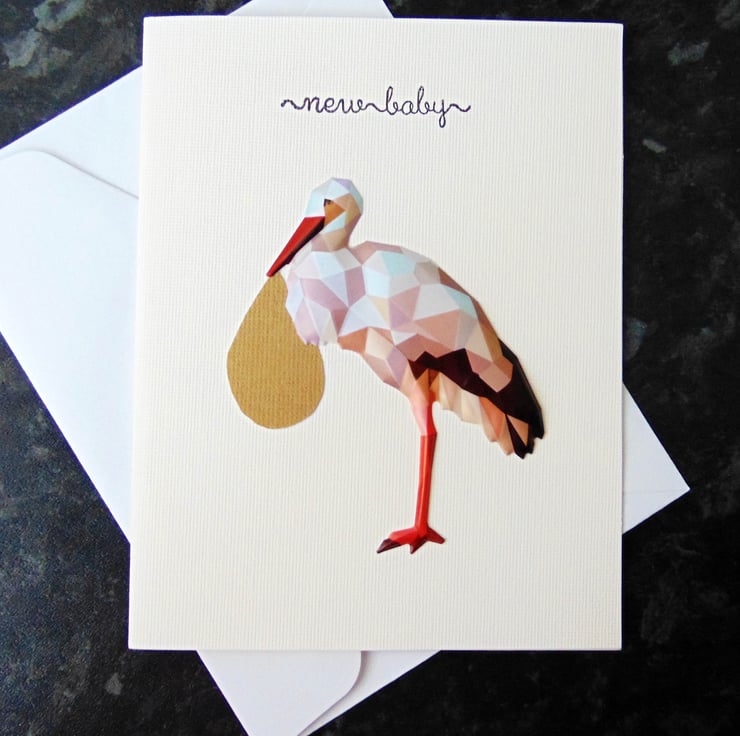 The perfect card for that newborn bundle of joy. This geometric stork card is sure to stand out as something unique on the mantle piece or bedside.