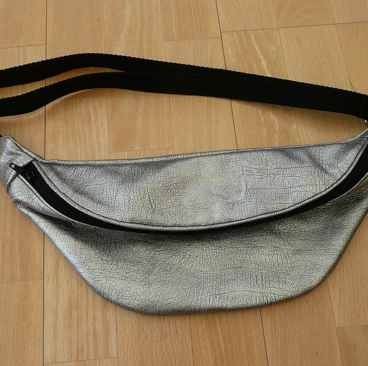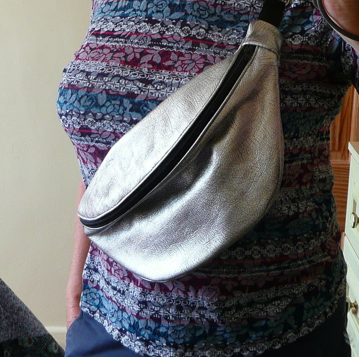 Silver leather crossbody bag, bumbag, fanny pack, stallholder bag, festival bag