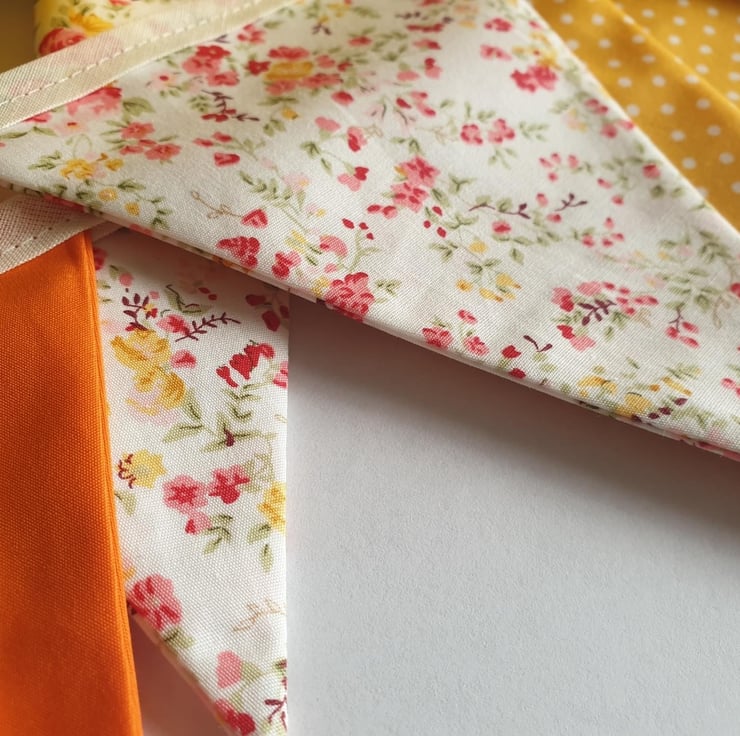 Bring a touch of sunshine to your space with one of these super pretty double sided fabric buntings.