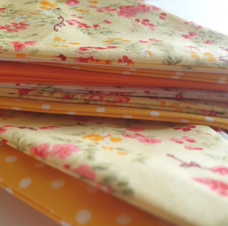 These are made from varying patterns of cotton fabric including florals, plain bold and polka dots and can be washed and ironed on cool and used over and over again. Happy days!