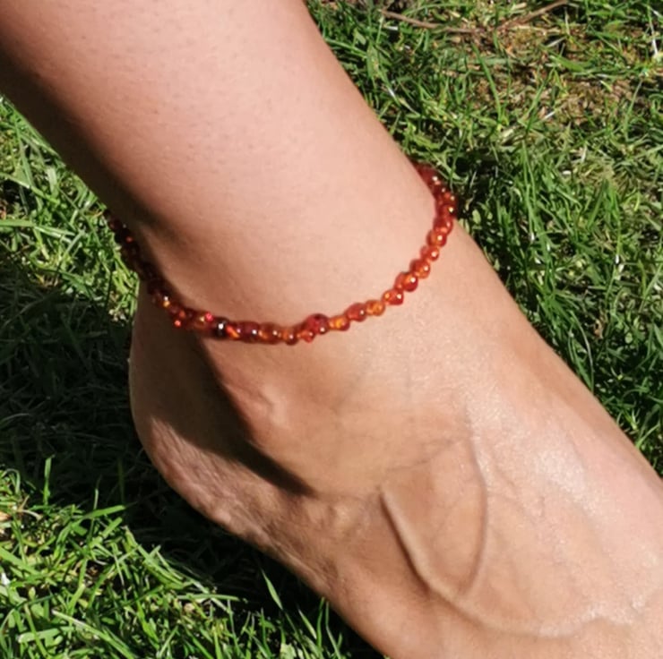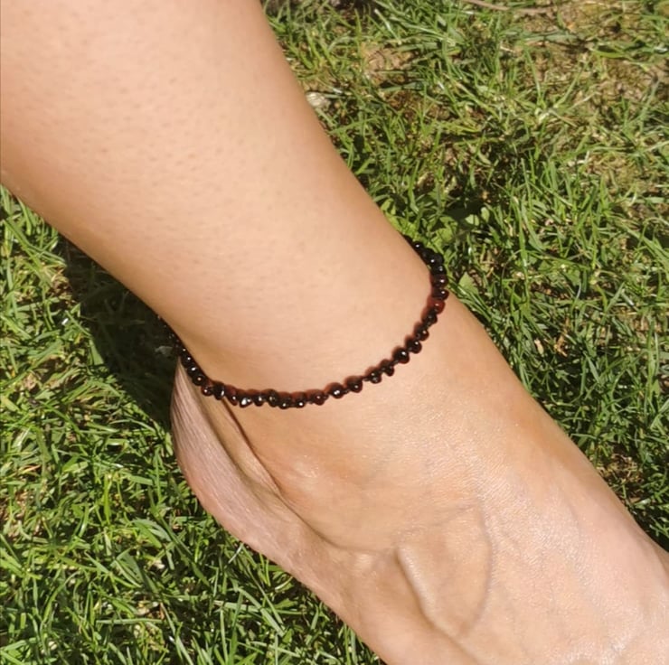 Genuine Baltic Amber Anklets are made by knotting beads – sizes 20 cm – 30 cm in 9 colours. Made with Baltic Amber beads, knotted on a strong nylon string with a safety screw barrel clasp.
