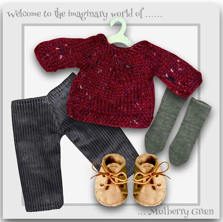 Mulberry Green is all about a time, now gone, but not so very long ago, when children had a great deal of freedom to explore their surroundings and use their imagination in play. A time when the world moved at a slower pace and things were made to last. To celebrate this heritage, wherever possible, I use traditional crafts and materials to create my dolls and outfits.