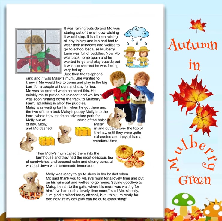 There are other children in Maisy’s class at school - Violet, Billy with his pet rabbit, Amber, Tilly, Rosie and her kittens, Amelia, Ruby, Marigold, Bobby with Max the dog, and the twins Oliver and Olivia, who have a puppy called Oscar. The dolls are all 26cm tall and baby Daisy is 16cm. Maisy and Mo love nothing more than having adventures with their friends. You can read about their adventures on my Facebook and Instagram pages - Maisy Muffin Rag Dolls and on my Mulberry Green Pinterest boards.