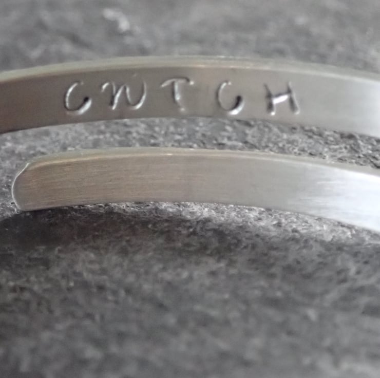I love the idea of jewellery with a secret message and chose to stamp the inside of this silver bangle with the word CWTCH, which means hug or cuddle in Welsh. It would be lovely gift for a loved one or friend. I also stamped two cute little hearts on the outside to look pretty.