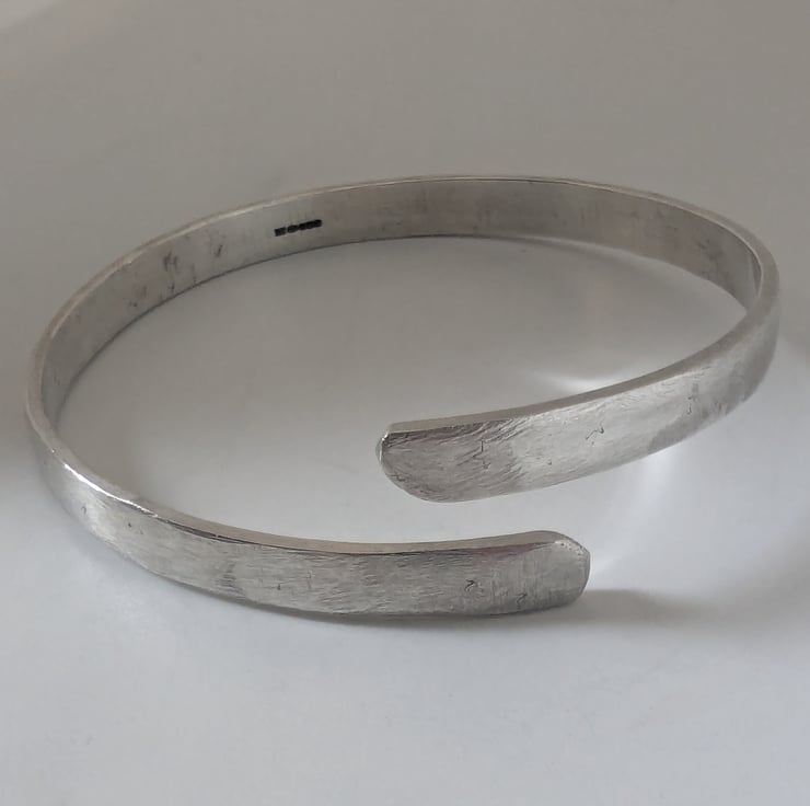 The simple design of this bangle brings out the raw beauty of the silver. I love the texture and lustre which catch the light. It is a bangle which could be worn every day or on special occasions.