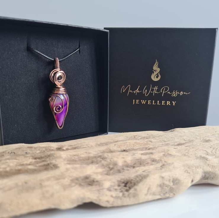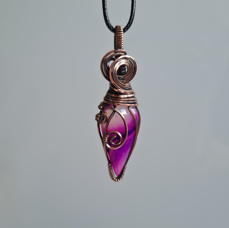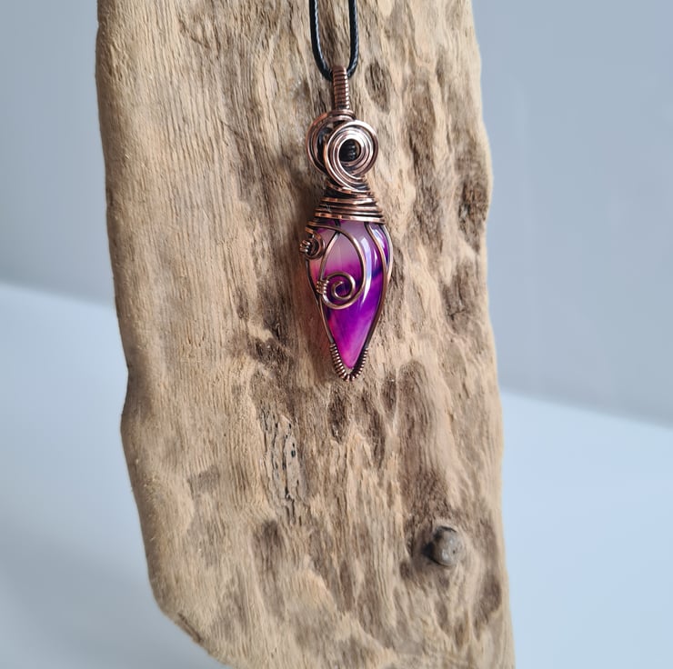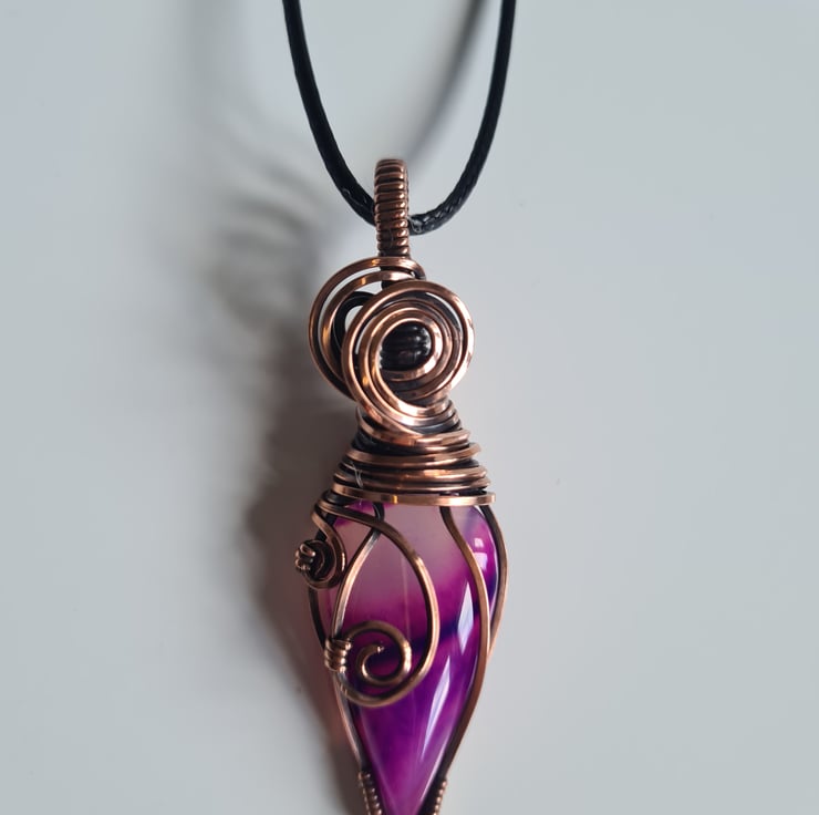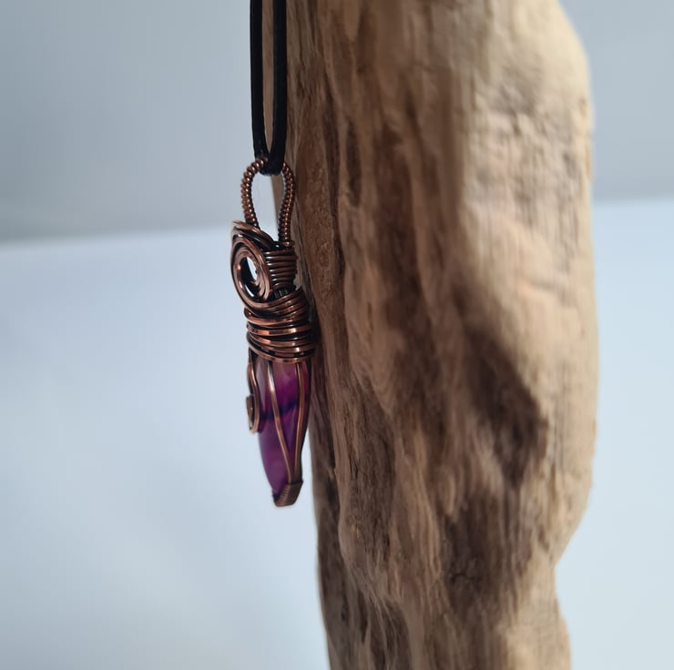 A very stunning and unique Pink Botswana Agate stone, which I have wrapped in pure copper, and then antiqued and polished for the final effect. A beautiful unique stone which looks amazing teamed with the copper.