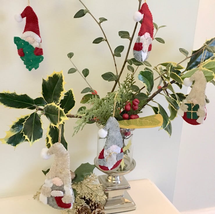 Hand crafted Christmas decorations make a wonderful addition to the Christmas tree and this kit utilises simple stitch techniques to create a set of cute Christmas Gnomes in British wool felt.