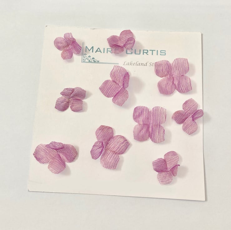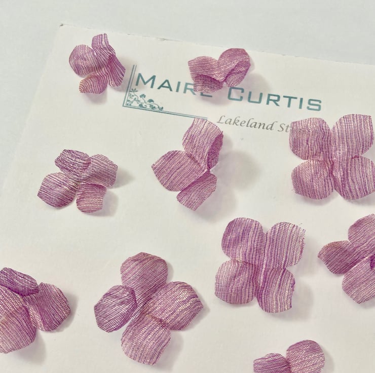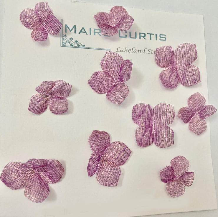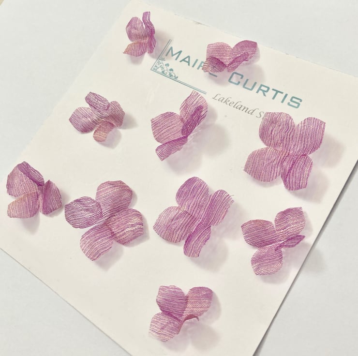 Shimmering Hydrangea Blossom petals in stunning violet gold shimmering organza.