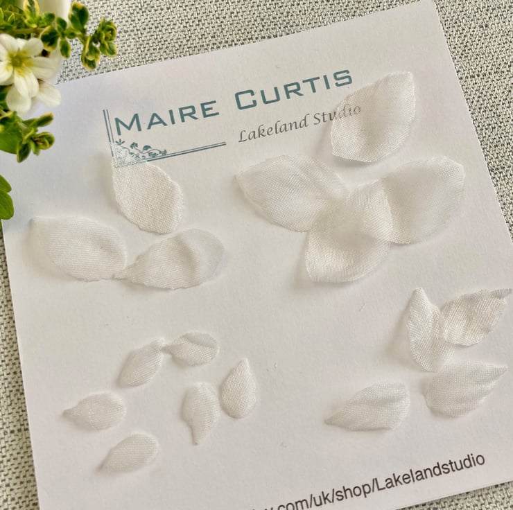 Translucent silk organza leaves, perfect for making floral bridal circlets and hair clips.