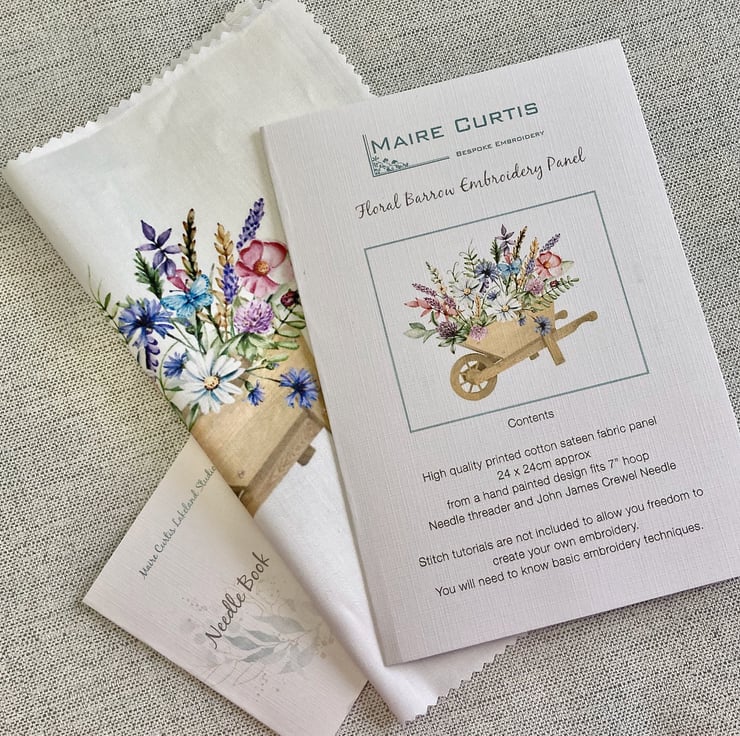Supplied as a 24 x 24cm panel (approx), the design will fit into a 7" hoop when finished or can be mounted and framed.
