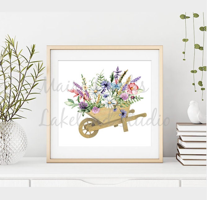 Butterflies and ladybirds play in this barrow full of freshly picked wild flowers in shades of pink, violet and blue on this Printed embroidery panel.
