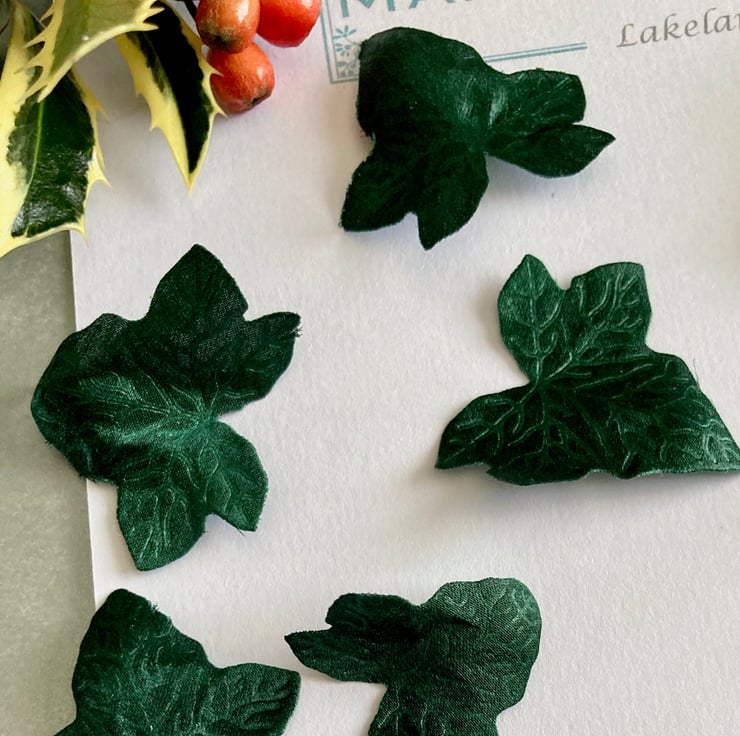 Hand crafted silk satin Ivy leaves, available in five different sizes in packs of 25 or 100