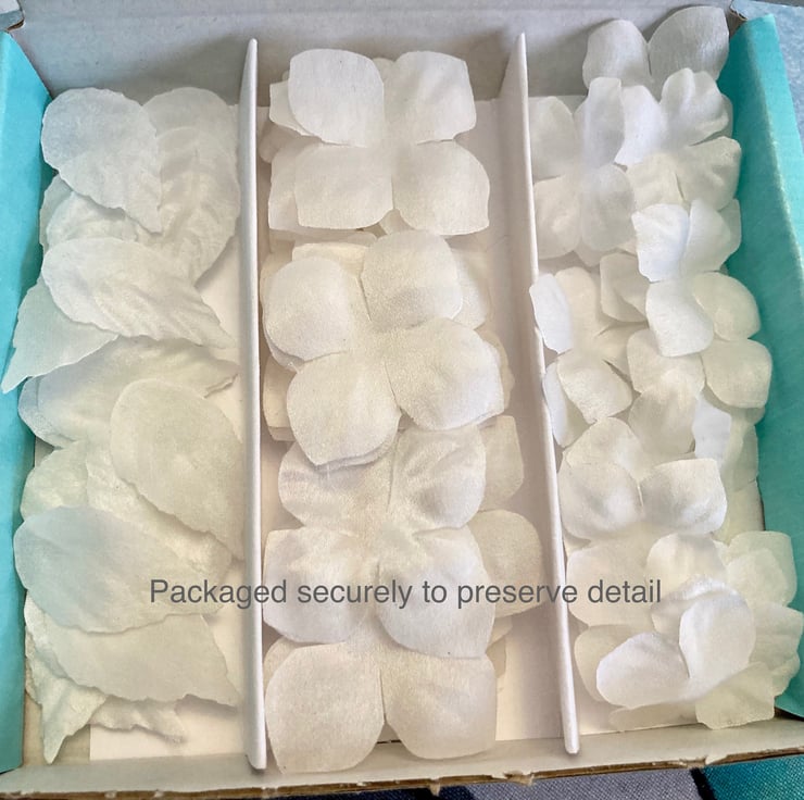 Our hand crafted silk embellishments take a great deal of time, care and attention to detail and are shipped all over the world, so we pack them in sturdy boxes to preserve detail during transit.