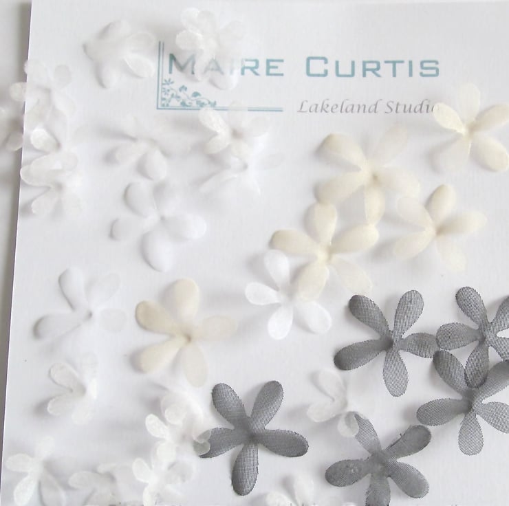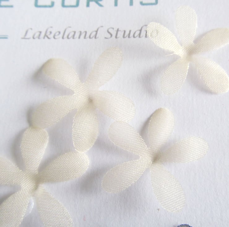 Delicate hand crafted couture silk organza Jasmine flowers in a pack of 25.