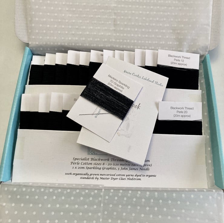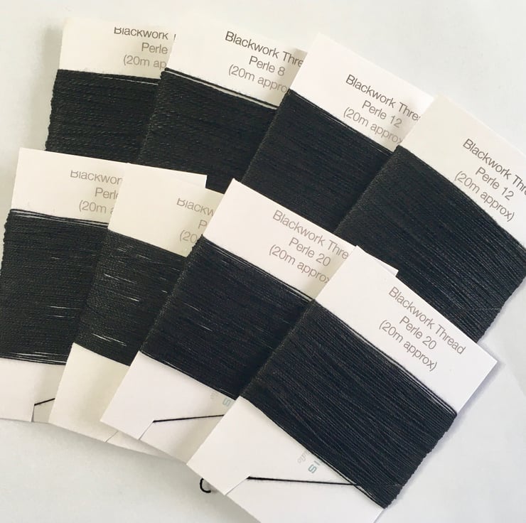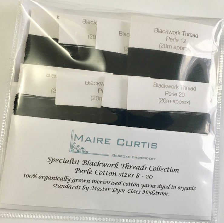 Obtaining a collection of blackwork thread in different sizes is almost impossible without going to different suppliers and this risks the threads being different shades of black.