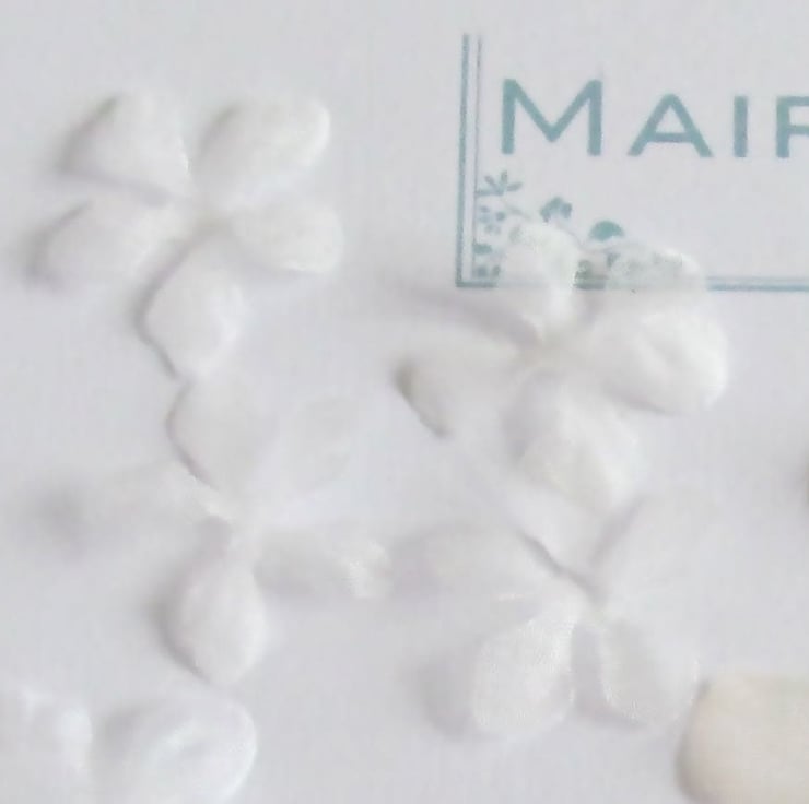 Hand crafted silk organza Apple Blossom petals in a pack of 25.
