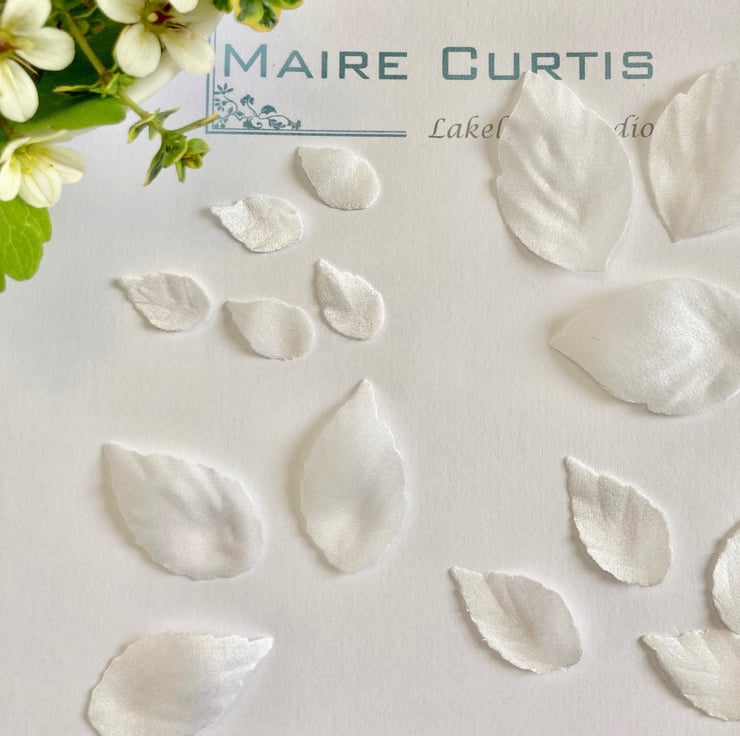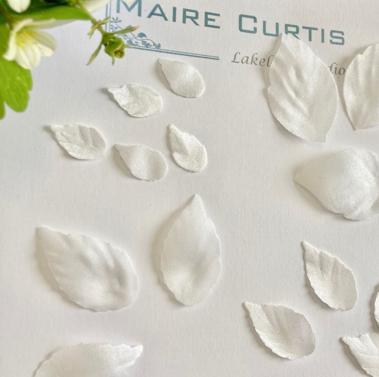 These lovely white silk satin leaves are perfect for making floral bridal circlets and hair clips.