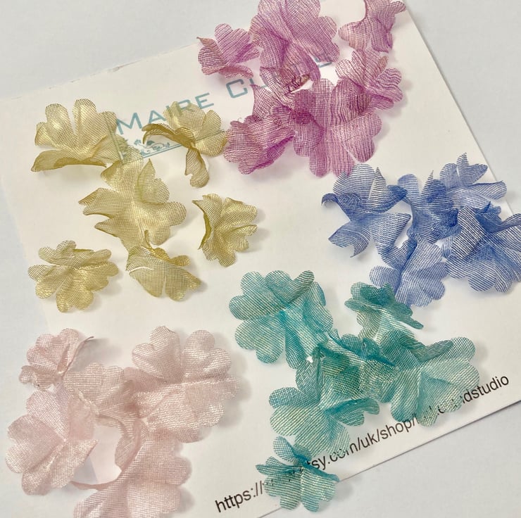 Attach them with a pearl or diamante in the centre to add dimension to wedding dresses, bridal hair accessories or stage costumes.