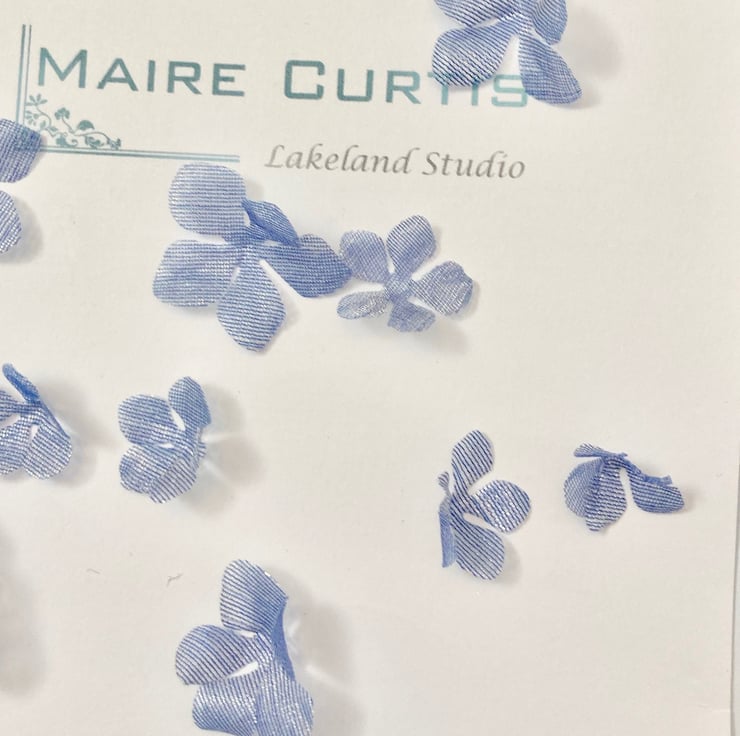 We have developed unique techniques to create these gorgeous, delicate shimmering blue flowers.
