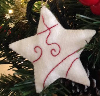 These delightful little stars measure about 8cm x 8cm x 5mm when complete and look great on the Christmas tree or strung on a garland.