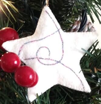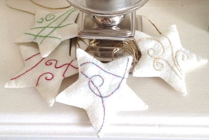 Create these special felt stars hanging decorations with a sparkling hand embroidered wire wrap design.