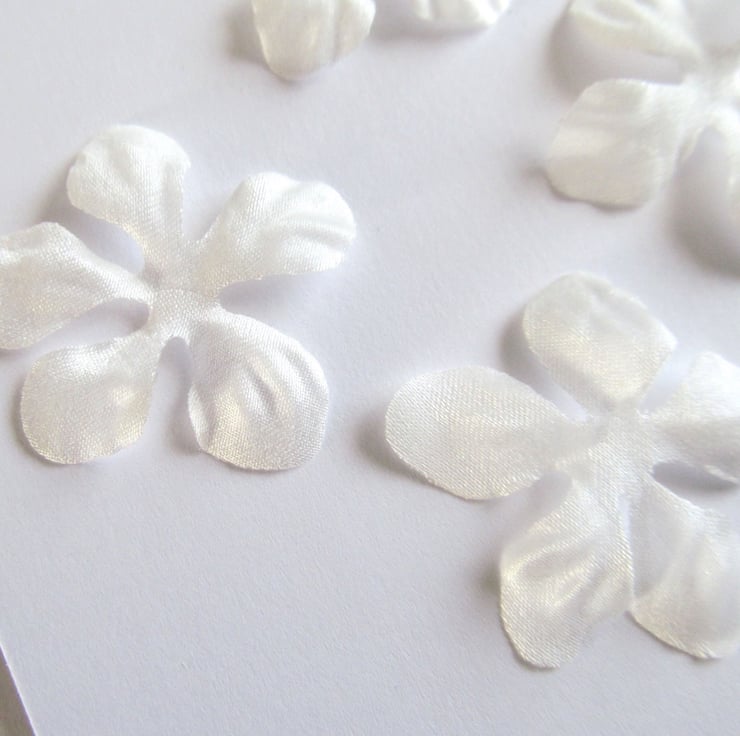 Hand crafted couture silk satin Apple Blossom petals gently shaped to give a 3D effect..