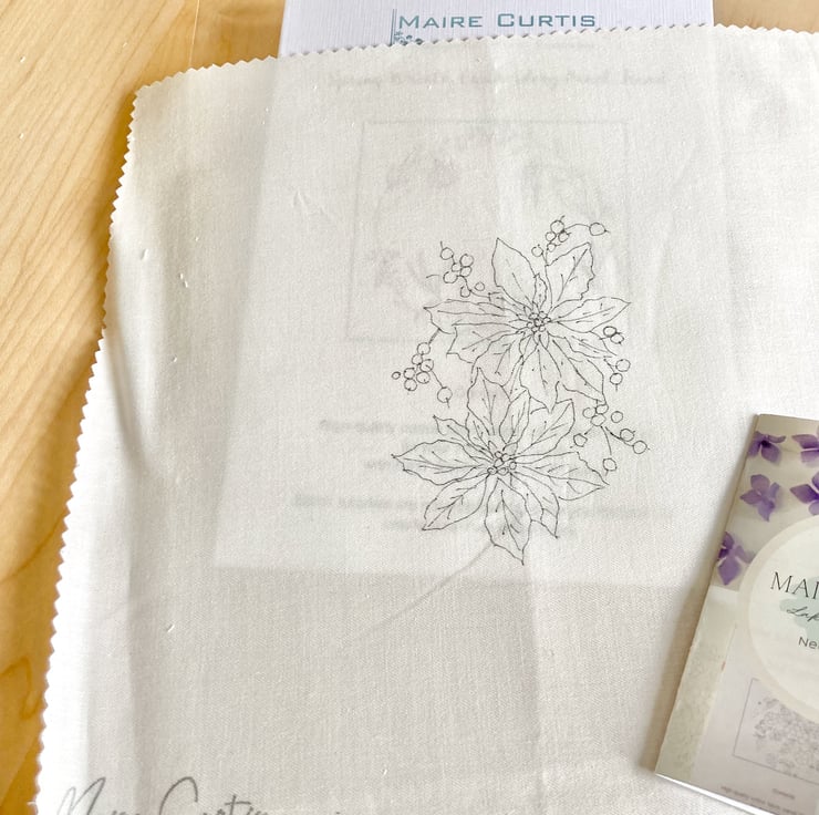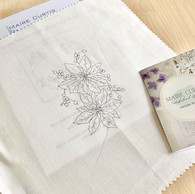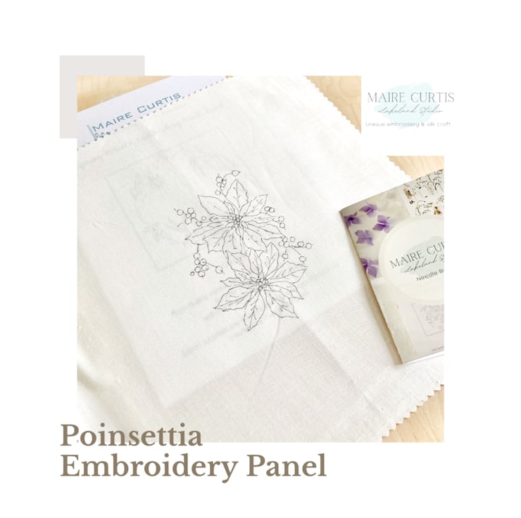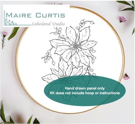 A sweet Christmas Poinsettia is hand drawn on high quality cotton sateen embroidery panel