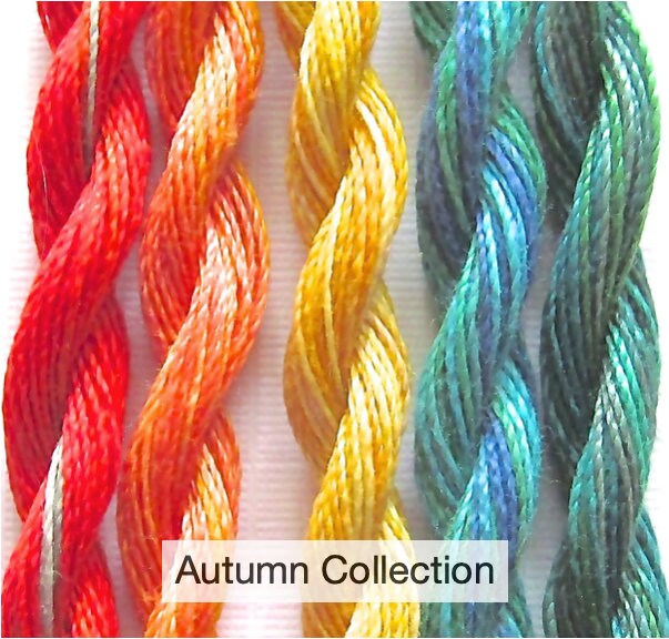 Five beautiful autumn colours are selected for this pack of fine perle 16 variegated