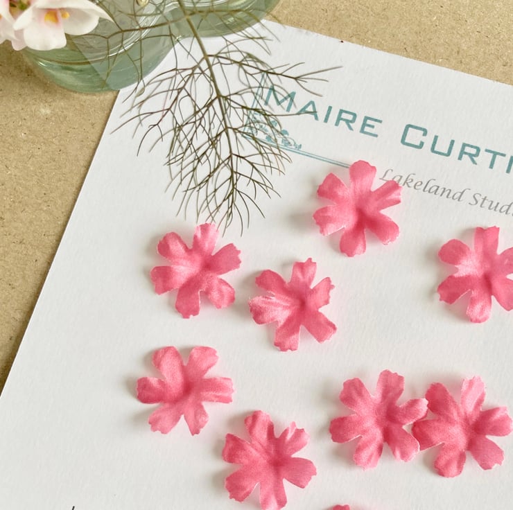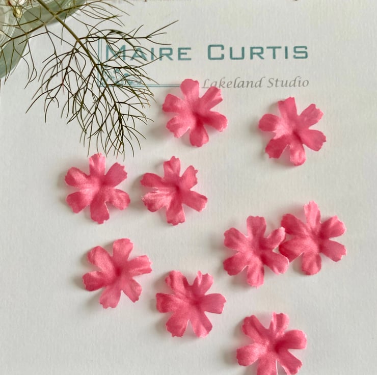 This satin is dyed to a beautiful rose pink and the petals have a gentle irregular edge giving them a touch of delicacy.