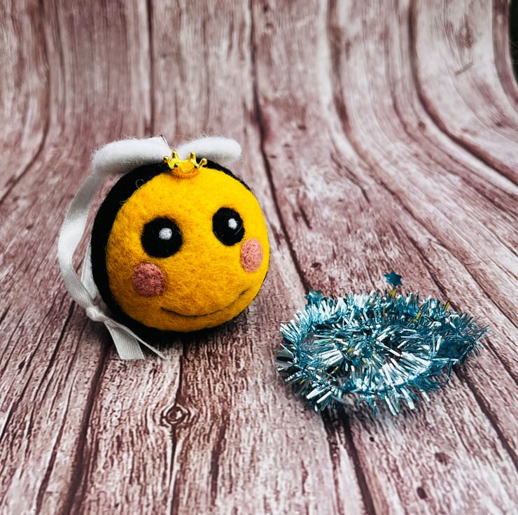 Needle Felted Small Queen Bee bauble / hanging decoration.