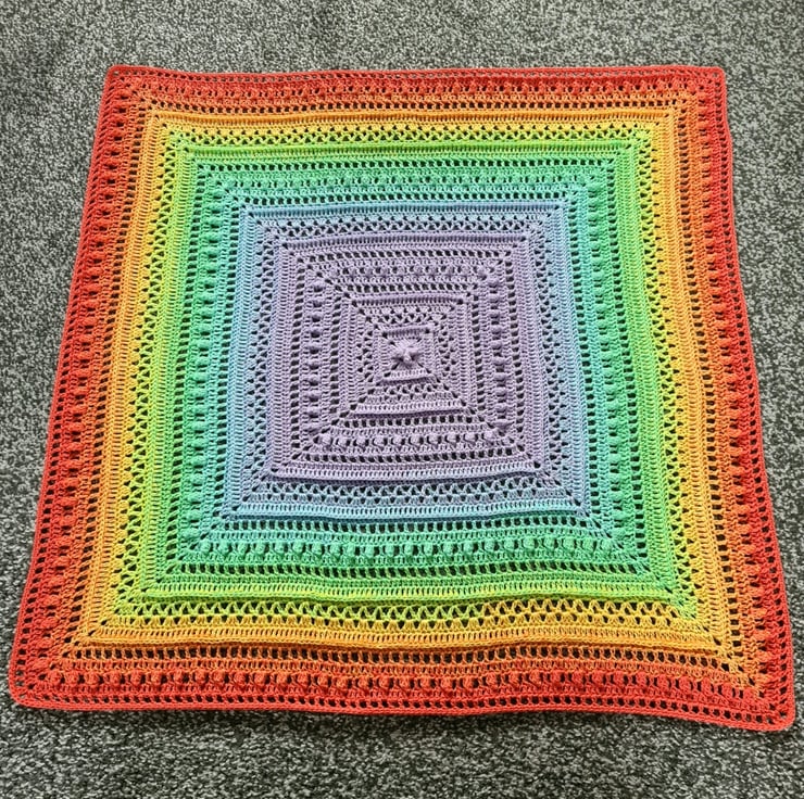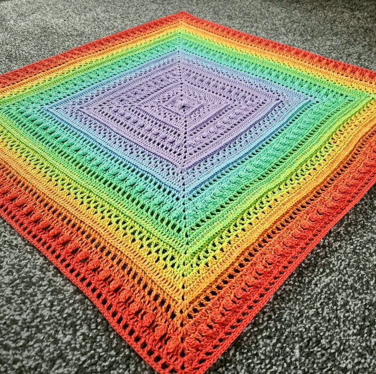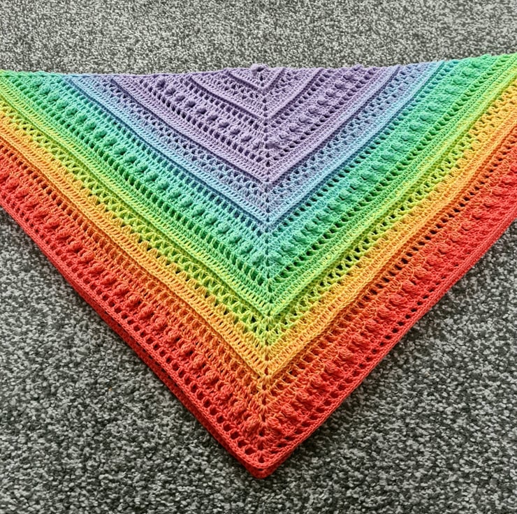 This beautiful rainbow blanket is light and airy, perfect for spring and summer. It is so soft and has a lovely drape. Its made with 100% cotton yarn that is machine washable at 30 degrees (a must for mums!!)