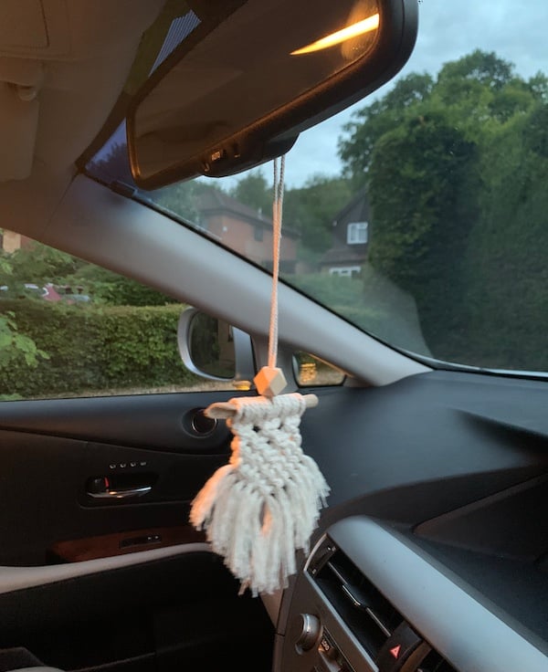 This cute macrame piece adds a unique element to your car, home or even the 'smallest room' in the house! Just add a few drops of your favourite essential oil to the wooden bead and/or branch for your personalised fragrance.