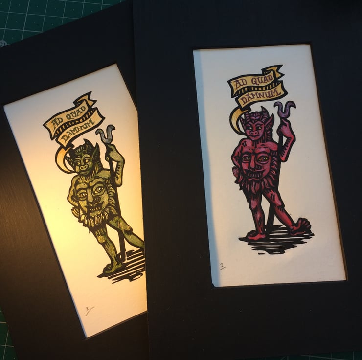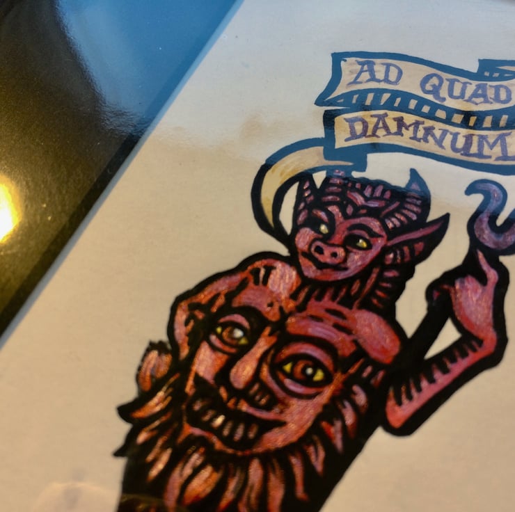 Inspired by the inhabitants of The Garden of Earthly Delights, I wanted to produce a small devil which seems to be a recurring theme, given the name and theme of the legend of Tarraway. I want to create a few characters of this size and demonic persuasion as a set. "Ad Quod Damnum" translates to "Appropriate to the Harm" which felt appropriate to a demon's lot.