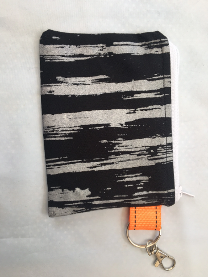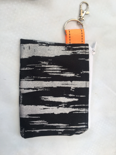 The purse is made using a black fabric remnant that has been hand screen printed with my unique abstract hand screen printed design in silver.