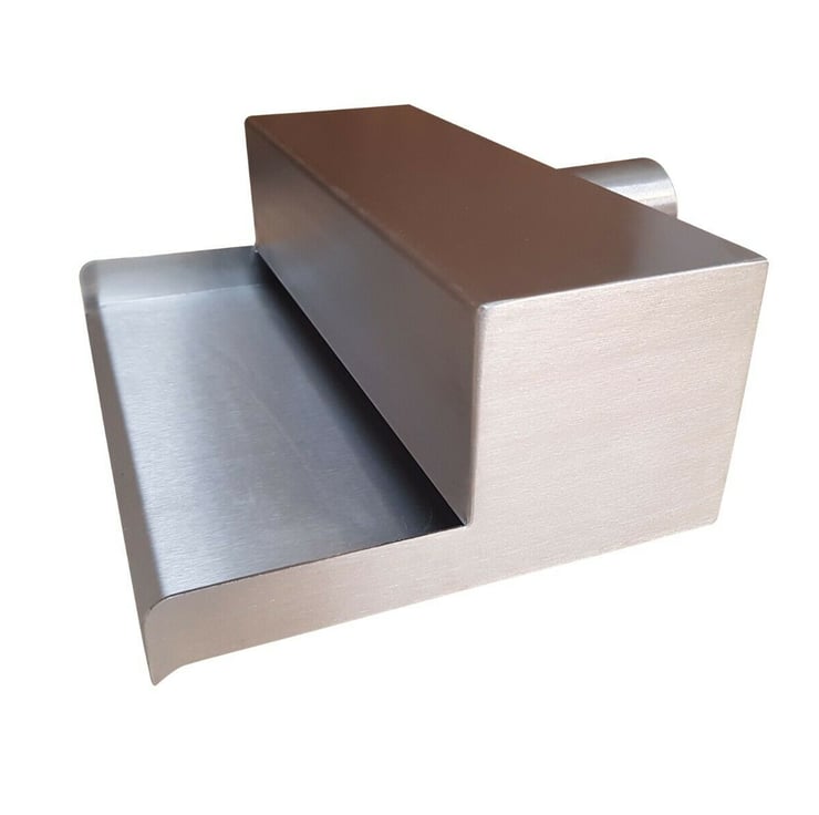 This design allows the water to enter the water blade from the rear before the internal baffle disperses the water across the width of the blade, standard water blades build pressure in the reservoir forcing the water upwards through the internal baffles and out over the spout. With this design the water actually leaves the inlet inside the back chamber, before hitting the internal baffle and spreading evenly across the blade.
