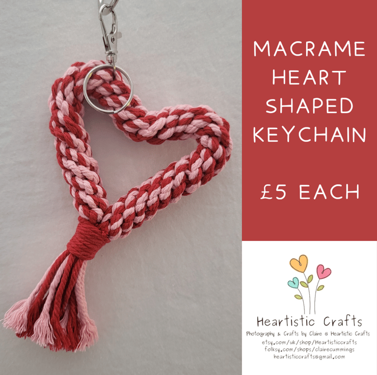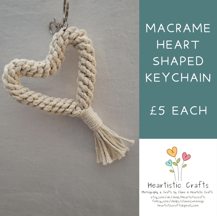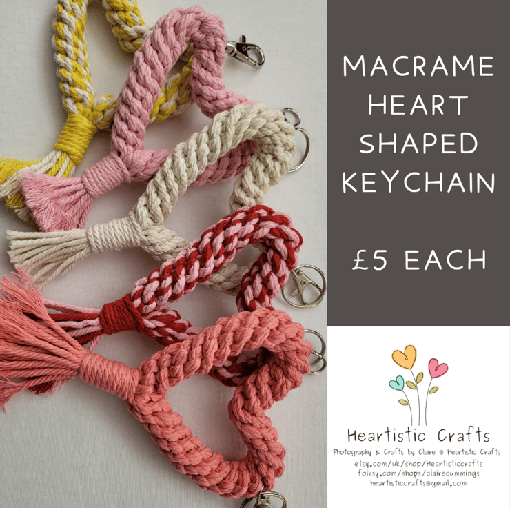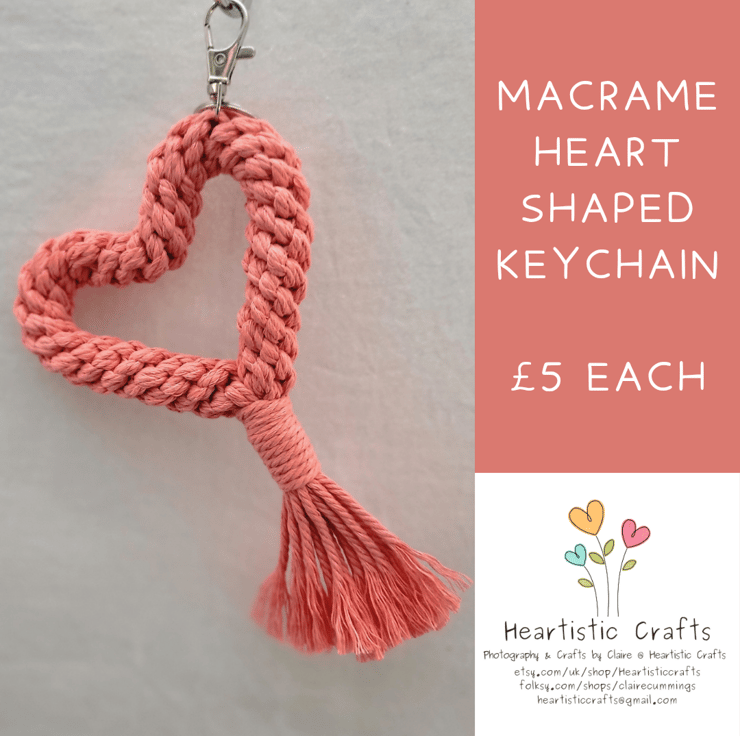 Handmade Macrame Heart Shaped Keyring.