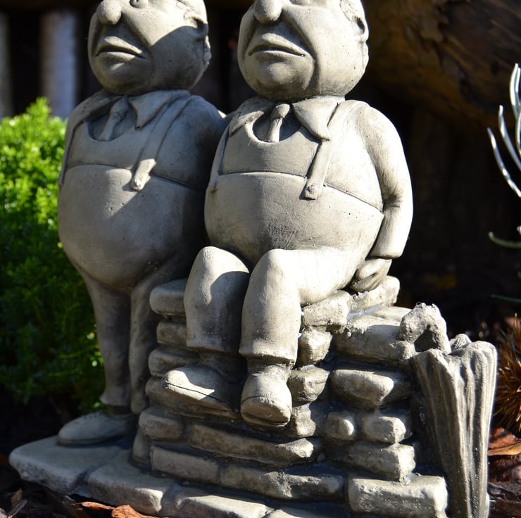 Tweedle Dee and Tweedle Dum make a charming piece in any Home or garden either by their selves or as an addition to the Alice’s adventures in wonderland collection which is available from Hidden Corners.